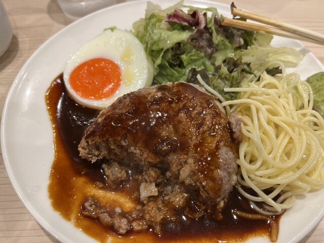 950円でご飯大盛りもオッケー、かなりコスパいいです。肉汁もジュワーっと出てきて、ハンバーグの味もGOOD‼️