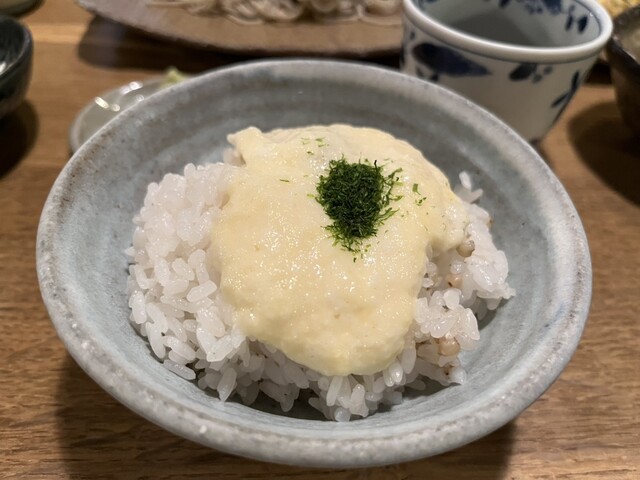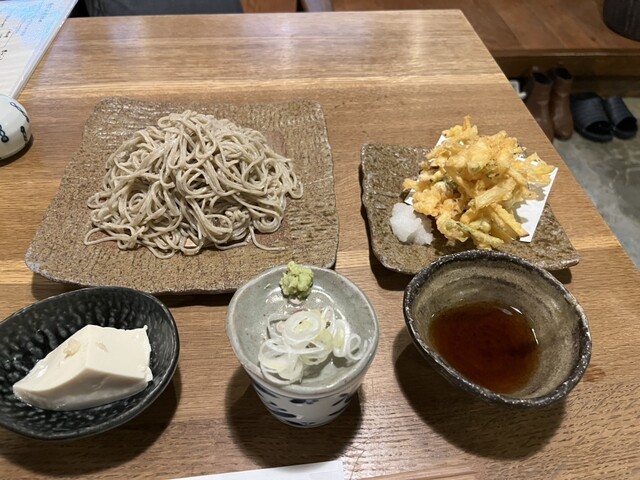 まずお豆腐が出てきます。手作りの味で美味しいです。次にもりそばが来ました。このそばが本当に美味しいんです。柔らかくないのが良いですね‼️ほぼ同時にかき揚げがきました。揚げたてで美味しいです。今日はいつもよりかき揚げが美味しく感じました‼️最後に青のりのかかったとろろごはんが来ました。青のりがかかってるせいか、なんか美味しいです(笑)。