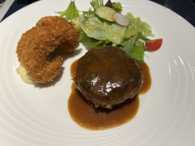 本日のランチは、エビフライとハンバーグ‼️