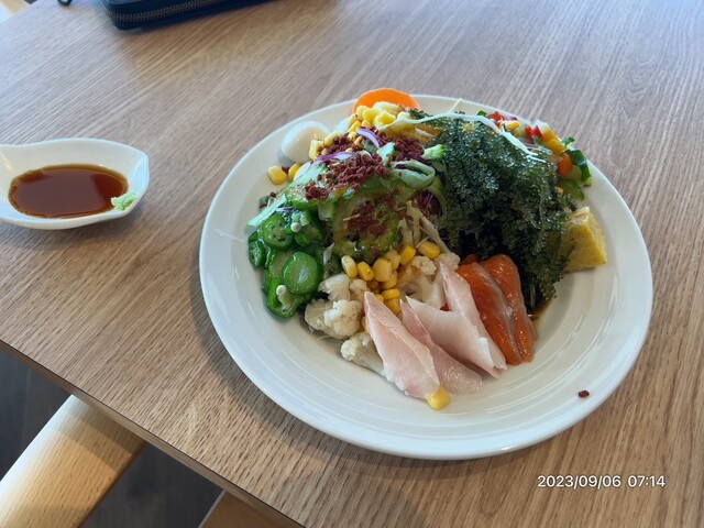 ホテルの朝食はあまり期待しておりませんでしたが眺めも最高!料理もサラダからラフティ、海葡萄など沖縄の食材も取り揃えられており大変満足の行く時間でした。