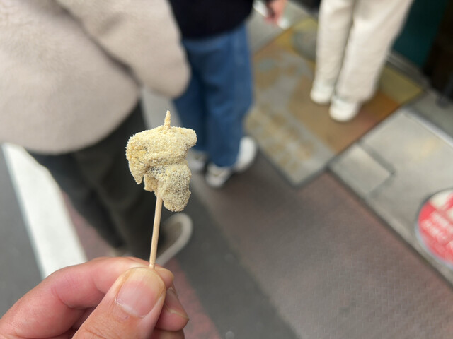 並んでいたらわらび餅の試食くれた!冬限定とか張り紙があったな!