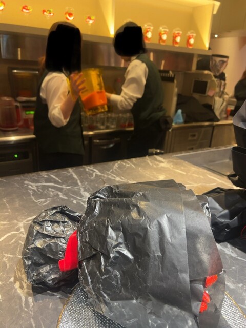 大勢のPTRさんがお出迎えでフラペチーノの最後の締めであるホイップを投入♪( ´θ`)ノ
