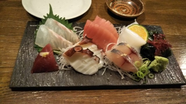 お造りは、まぐろ、かつお、ぐれ、いか、たこの5品。