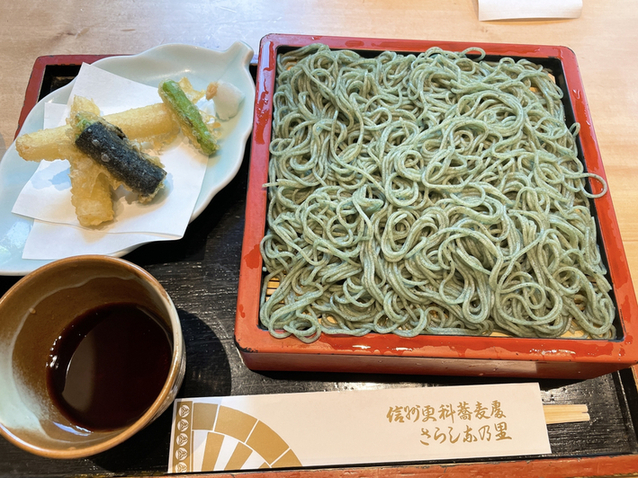 変わり蕎麦 よもぎ グリーンがきれいなお蕎麦です