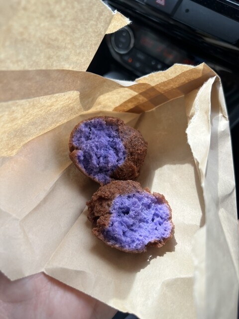 「紅芋ぱんぴん」アイスなし、アイスありをそれぞれ一つ注文。後悔します。必ず1人二つ買ってください!お腹いっぱいでも関係ありません!