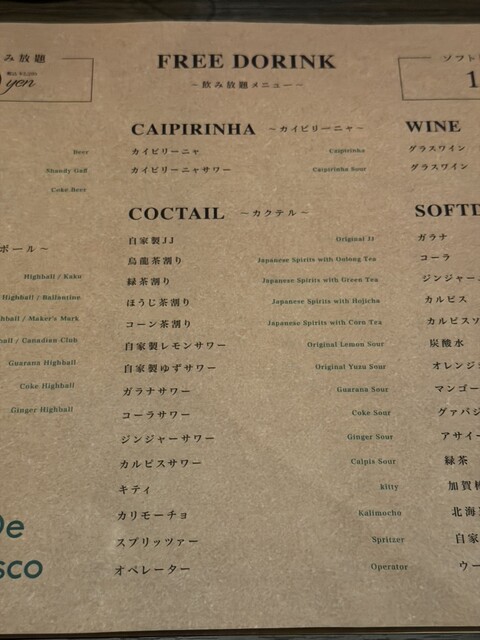 ・ソフトドリンク飲み放題 ¥1,100