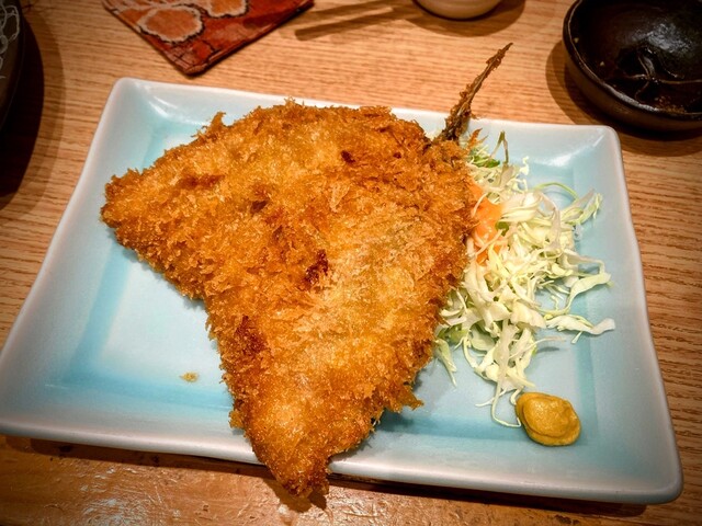 用事があって人形町に来たついでに2名で再訪。お腹が減っていたのでお酒を飲みながらいろいろ食べたいときにこちらは便利。今回はぶりのカマトロとホッケが圧巻のうまさ!抜群の安定感のアジフライは無論ながら鶏の唐揚げも実はうまい。