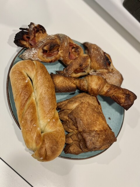 長方形で平たい形をしていて何層にもなってる、みたことないタイプの塩パン。これもザクザクパリパリ!違うんだけどポテチの塩気とザクの感覚でハマる。リピ