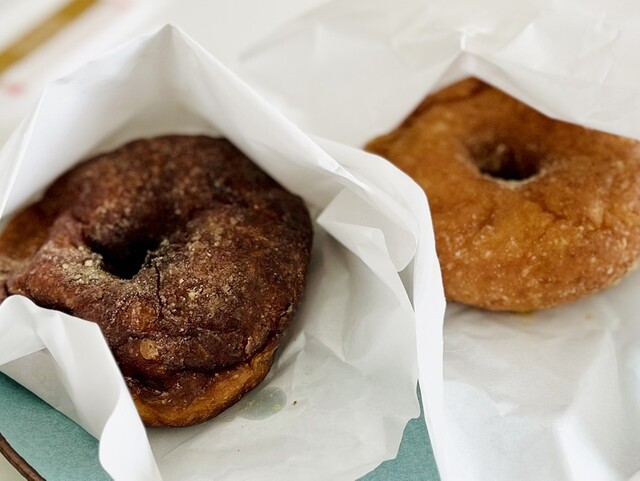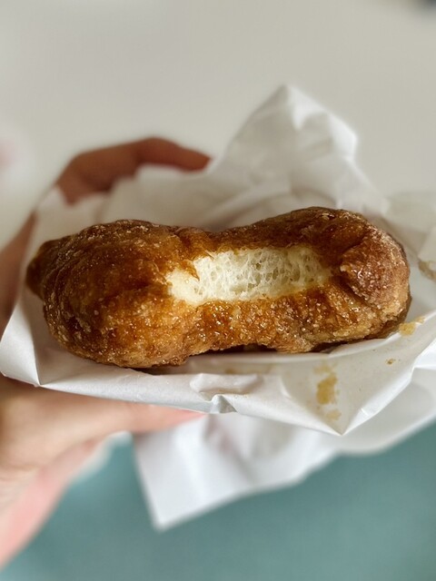 少し持ち歩いたからドーナツはまぶされてる砂糖が溶けちゃったけど、それはそれで美味しい。