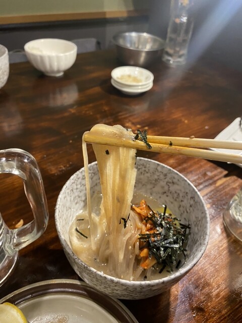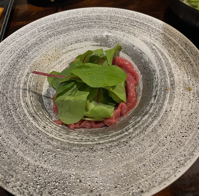 四角に綺麗に形どられたユッケの表面には旨みの強いネギ敷き詰められており、卵黄と共に絡めて頂きます。