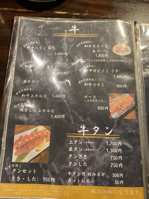 上 和牛上カルビ 左 和牛カイノミあつ 下 和牛ハラミあつ