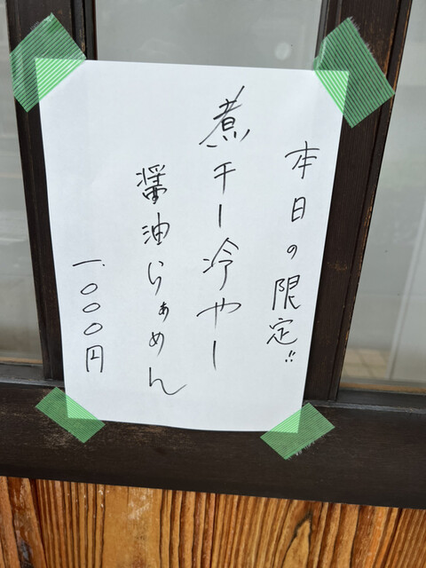 本日の限定は「九十九里産煮干し冷やし醤油らぁめん」