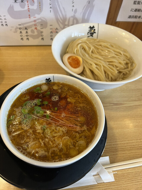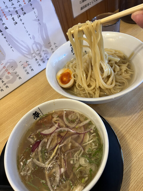 つけ汁は煮干しスープに鶏清湯スープを塩ダレを合わせ煮干香味油で仕上げた美味しいつけ汁です。