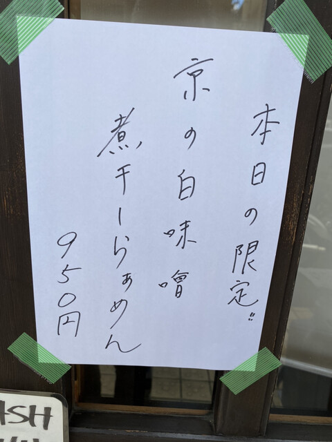本日の限定「京の白味噌煮干しらぁめん」