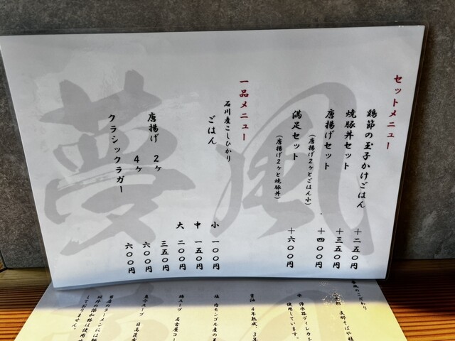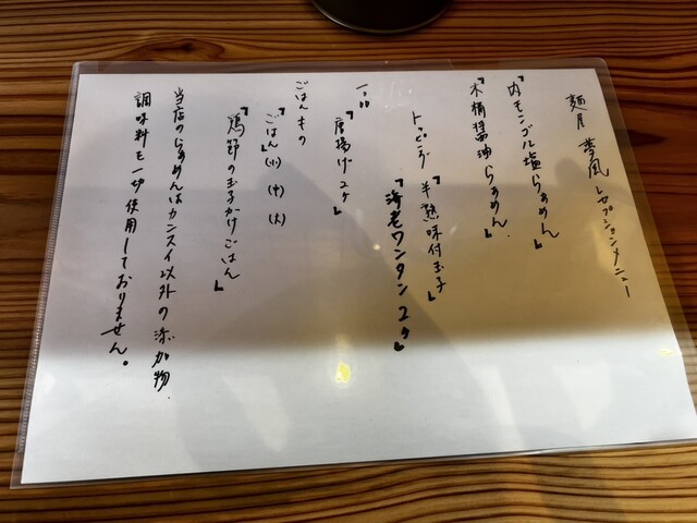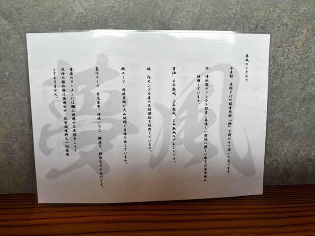 「麺屋 夢風」さんは無化調、無添加(カンスイ以外)のこだわりの一杯です。