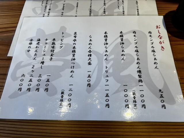 内モンゴル塩らぁめん 燻製鶏 ¥1,100