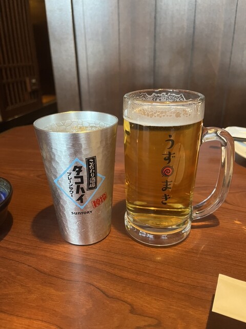 名物は串焼きともつ鍋と餃子とのことで、まずは生ビールとレモンサワーで乾杯。