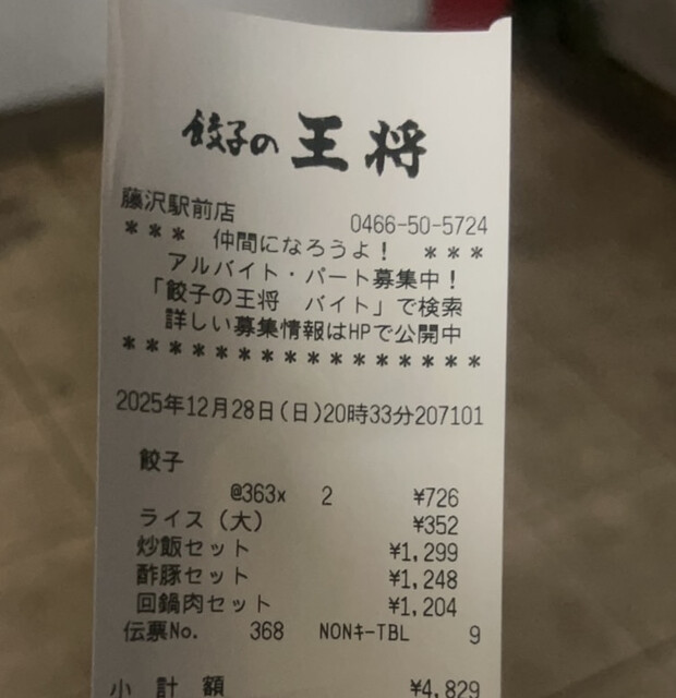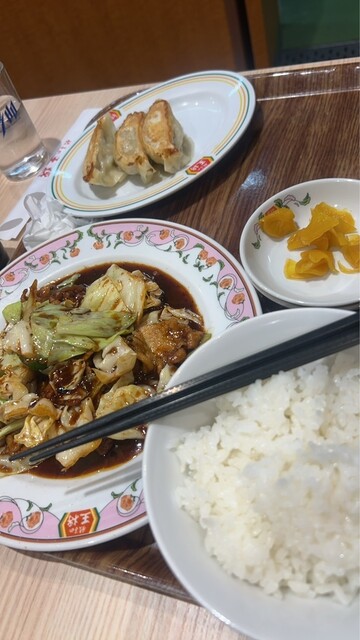 餃子2人前にライス大、炒飯セット、酢豚セット、回鍋肉セット。