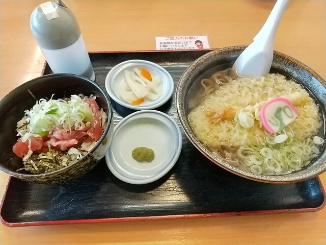 ミニまぐろすき身丼+天ぷらそばセット!!