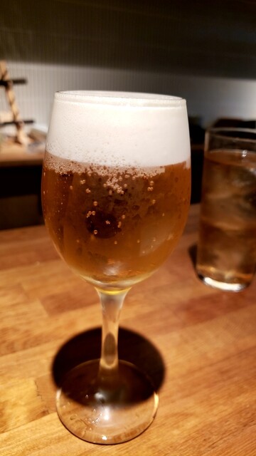 ドリンクは生ビール。スーパードライと黒ラベルだったかな、ドライを注文です。
