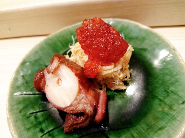 「今回、値上げをして申し訳ないので」ということで「アワビのきもソース&リゾット」を出してくれました。逆に高くついたと思うのですが、その辺りも大将のサービス精神の表れだと思います。