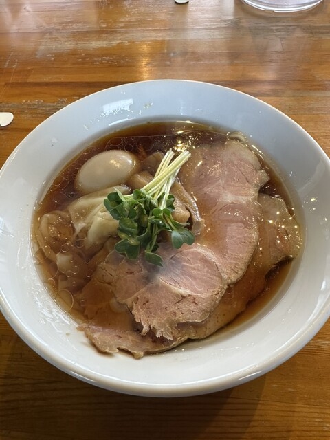 まろやかで複雑に混じり合って奥行きもある素晴らしいスープ。柔らかなチャーシュー、肉肉しいワンタン、しっかりとした歯応えのシナチク、完璧な茹で加減と味付けの玉子、全てがハイレベルで唸りながら食べ進め、超久しぶりにスープを最後の一滴までとても美味しくいただきました。