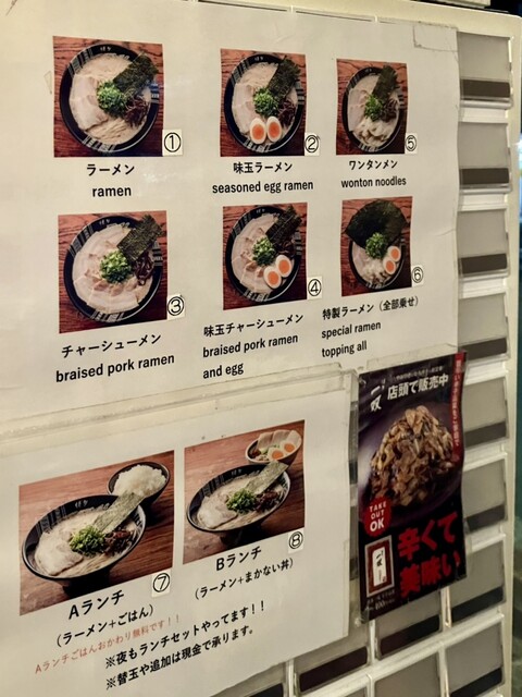 豚骨カプチーノと呼ばれる泡がクリーミーで食欲をそそります。硬めの特注の細平打ち麺とスープの相性もいい感じでした。