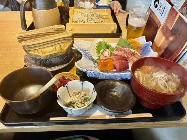 席に案内され数あるランチの中から、お刺身定食を注文…。そして生ビール!