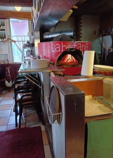 薪窯で焼くナポリピッツァやペットと一緒に入れるテラス席もある人気店で開店時間にはほぼ満席