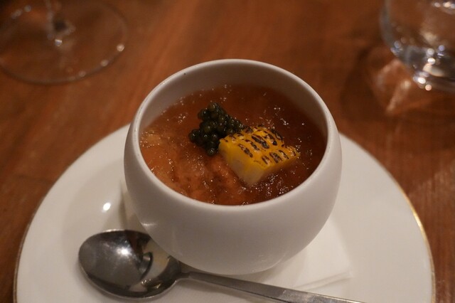 ・うに、カニ、コーンム-ス、焼とうもろこしジュレ