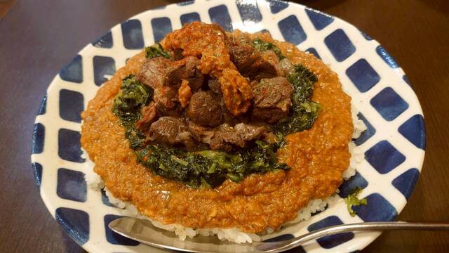 ここはベースのカレーは具材が溶け込んでる系で、上に乗せる肉やトッピングを追加するスタイル
