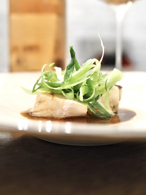 …イカと鮑の濃厚な香りを、葱生姜がさっぱりまとめてくれています。ペアリングで出てきた日本酒:作との相性バッチリでした。