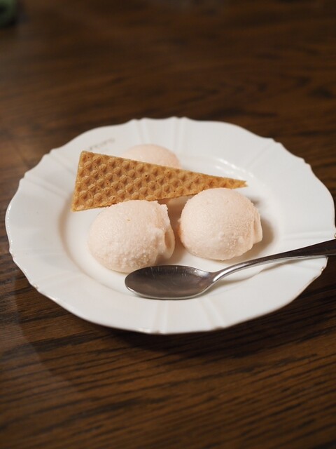 ⇨カンパリ風味の自家製シャーベットをいただきました。