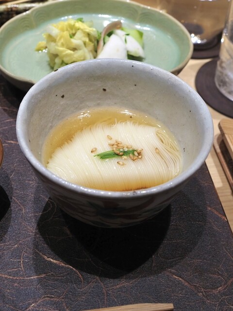→ 細く口当たりは絹のようななめらかさ。汁はなんと鶏や野菜からとったコンソメ!