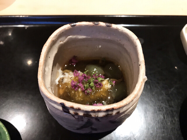 ○余市の塩水雲丹、すっぽんの煮凝り