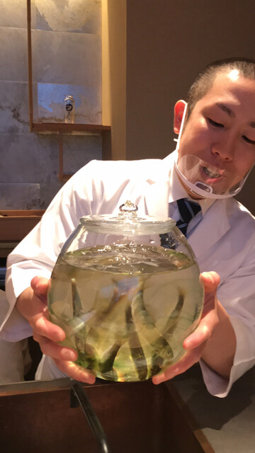 この日は雲丹の味が悪かったようで、でるはずが引っ込められる雲丹。