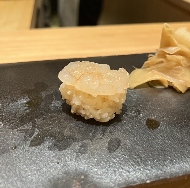 熟成鮨を目の前で丁寧に余分なところは取って、美味しい部分だけを提供してくれます。