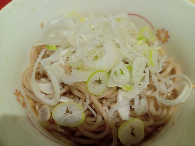 朝食セット¥380 半そば&ライス&ネギ&揚げ玉&生玉子