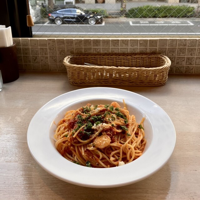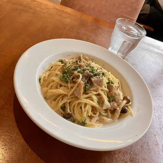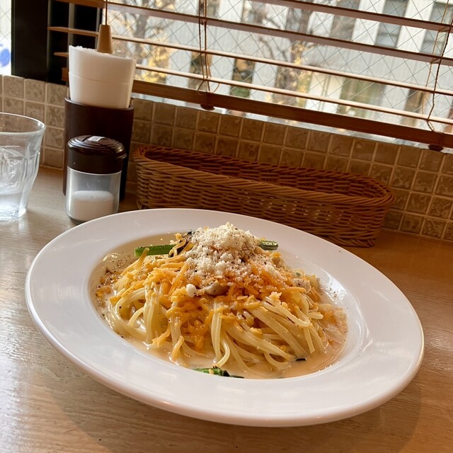 新年は4日から営業スタートです(4日はランチのみ)。ランチパスタの通年メニュー「ナスのミートクリーム」(税込み980円、大盛り無料、14時以降入店でコーヒ一無料)、ミニサラダ追加50円。
