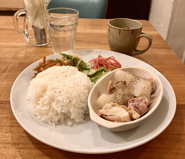 日替わりスコッププレート、若鶏と大根のハーブ塩煮込み(税込み1150円)。スープとホットコーヒーが付きます。