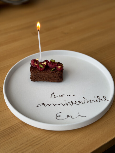 ★最後に、とってもおしゃれなデザートプレートをいただきました。ラズベリーとチョコレートのケーキ、少し酸味があり、甘すぎず美味しすぎた〜
