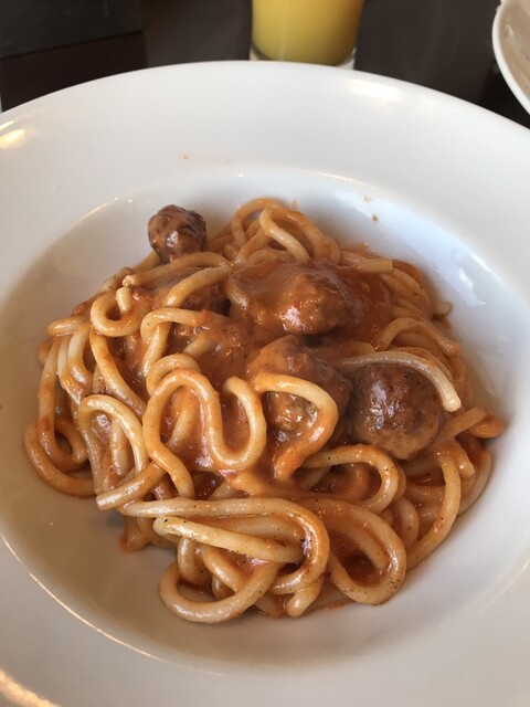 トマトクリームの麺が、とてもとても美味しくてびっくり!モチモチむちむちの麺に濃厚なトマトクリームが絡んでもう絶品でした。