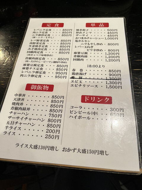 レバニラめん 半ライス ザーサイ