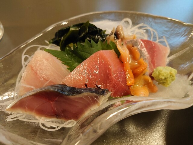 今回もランチで利用した「魚正」さん! にぎり寿司(上)を注文です。にぎりが来る前にツマミ的なものをお願いしました!
