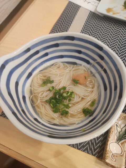 湯引きとお造り、蒲焼、天ぷら、握り(写真撮り忘れてました)、鱧すき(しめの素麺)、茶碗蒸し、デザートで飲み代ふくめて13000円はお値打ちかと