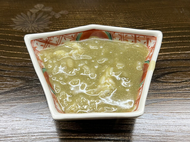 鮑に凄い数の隠し包丁を入れており、かけた餡が鮑にまぁ絡むこと。隠し包丁の数だけじゃなく、角度や深さもまたその美味しさを引き出す秘訣なのでしょうか。