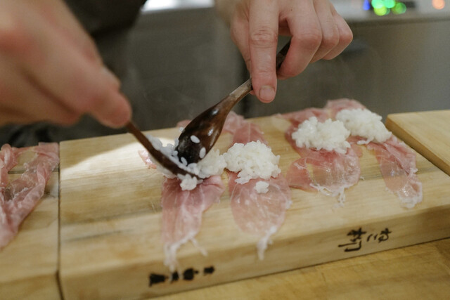 •炊き立てのお米(遠野4号)の生ハム巻き