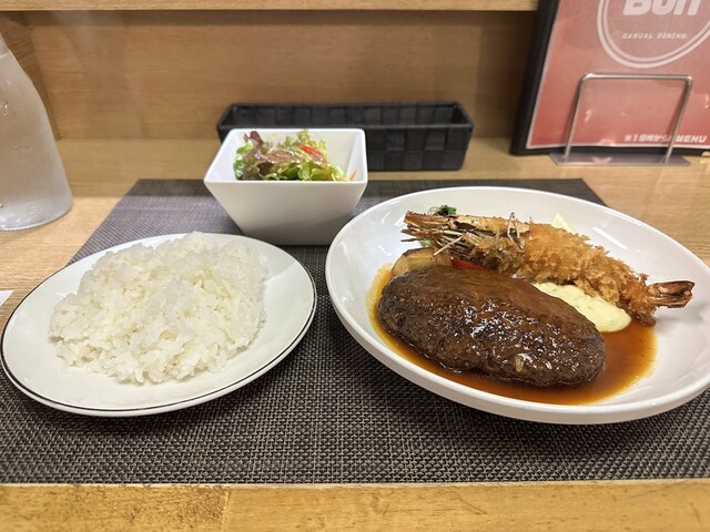 ハンバーグ&エビフライ 味もボリュームも満足
