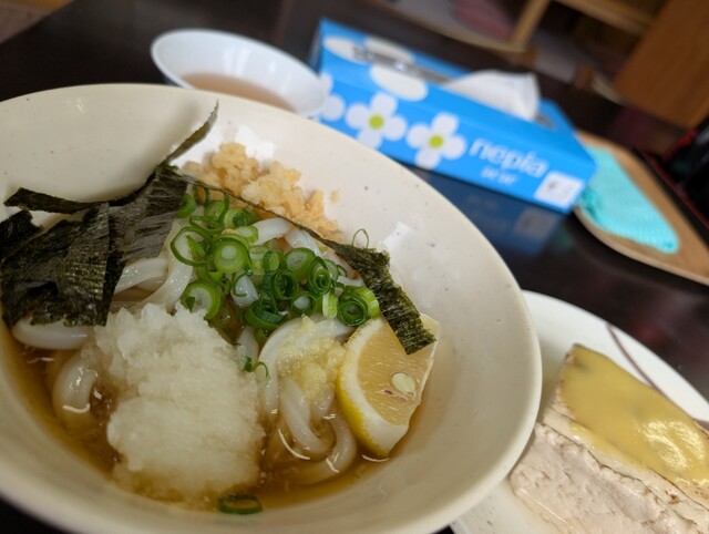 私は冷たいぶっかけ+とろろ+おでんの豆腐。