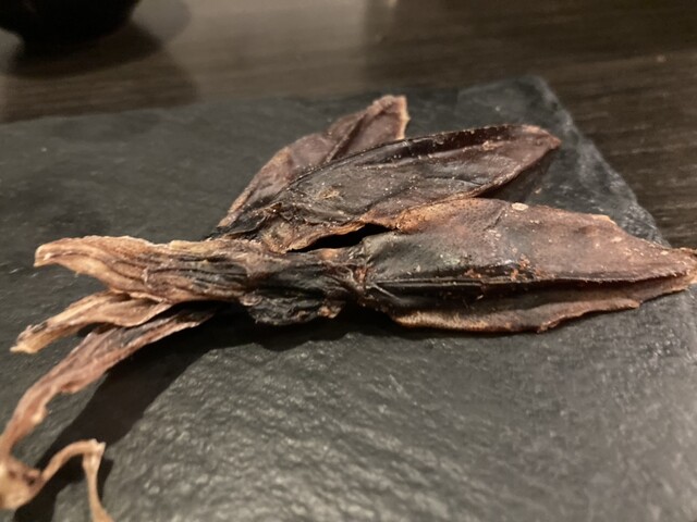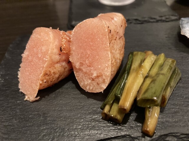 日本酒は居酒屋さんでよく見る超有名な銘柄はなく、ほぼ日替わりだそうです。店主さんに色々紹介して頂きながらグラスで頂きました。アテは三種盛り980円。5つから3つを選び、金華鯖の生ハム、明太子の炙り、ほたるいかの干したものでした。いずれも異常に日本酒に合います。
